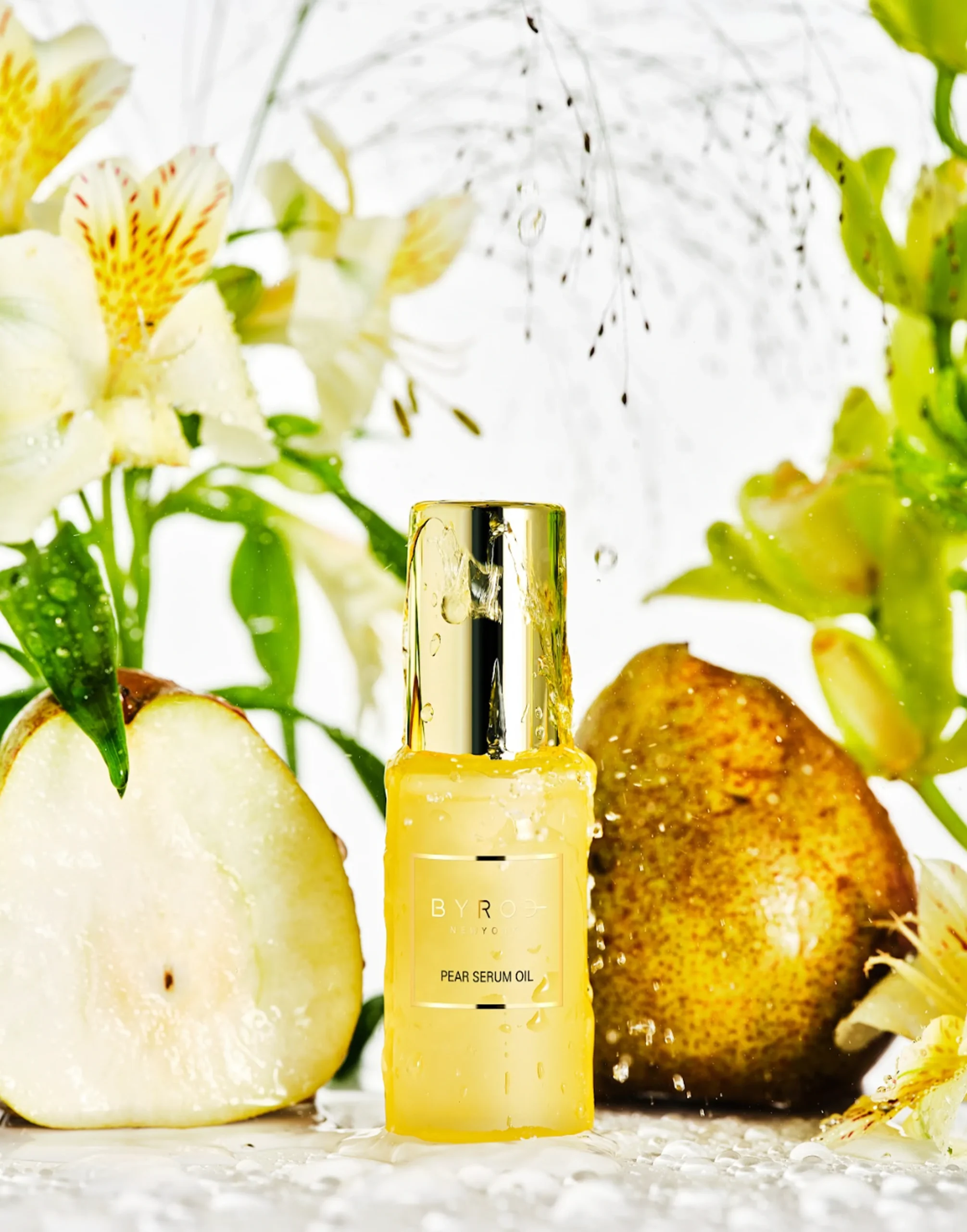 Kas tai: serumo ir veganiško veido aliejaus hibridas, praturtintas švytėjimą suteikiančiomis kriaušėmis, kurios drėkina odą ir suteikia jai švytėjimo.